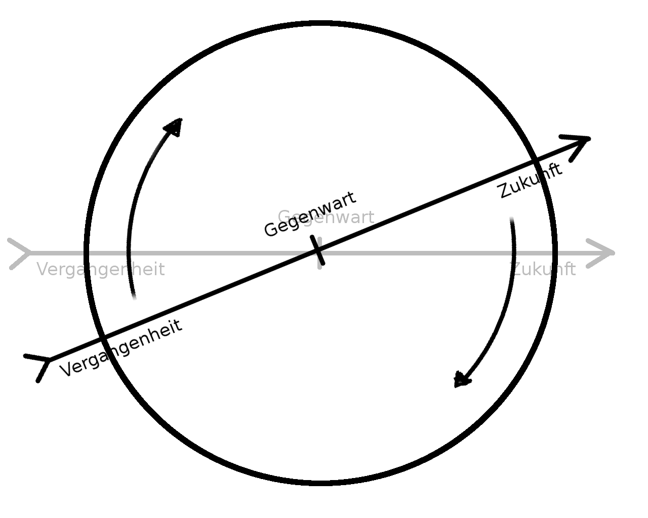 Der eindimensionale Zeitstrahl bleibt in diesem Modell weiterhin