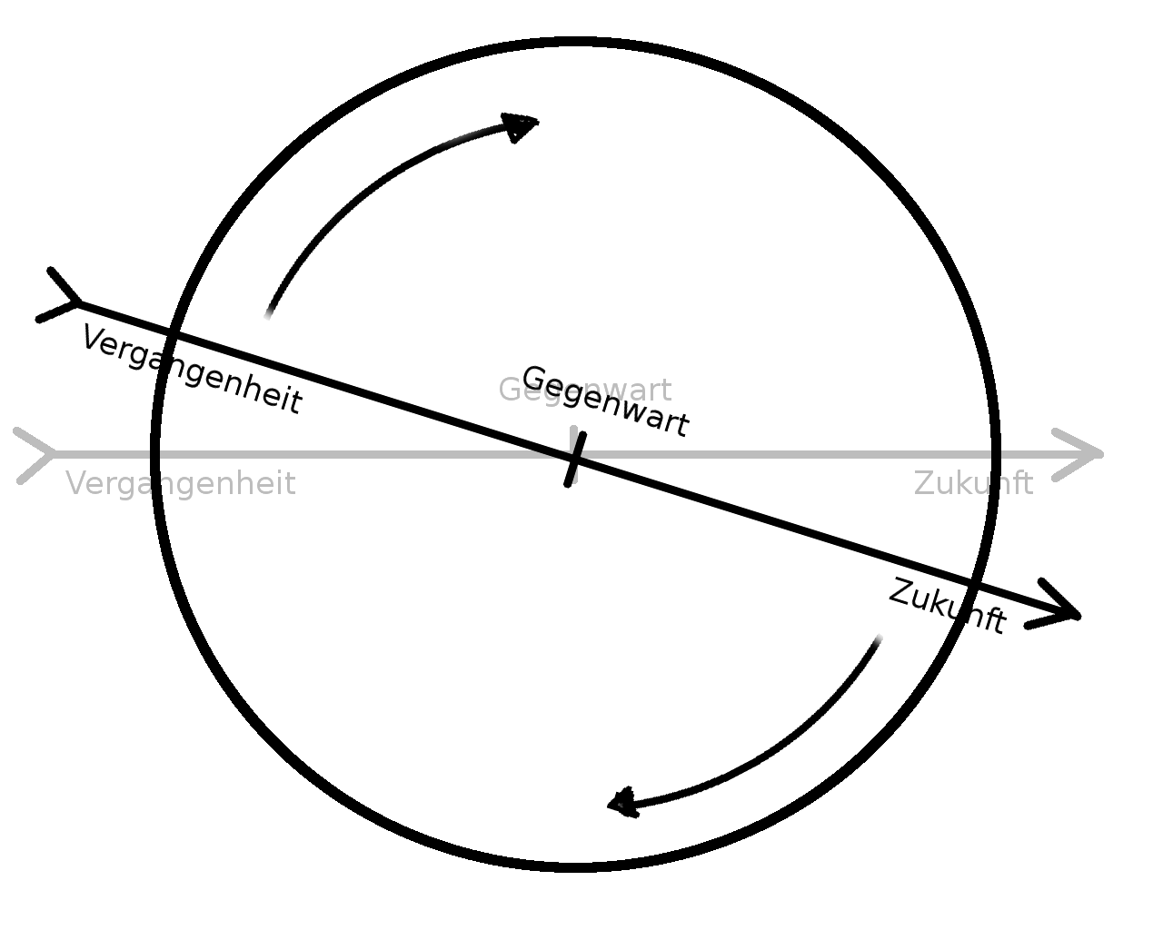 Der eindimensionale Zeitstrahl bleibt in diesem Modell weiterhin